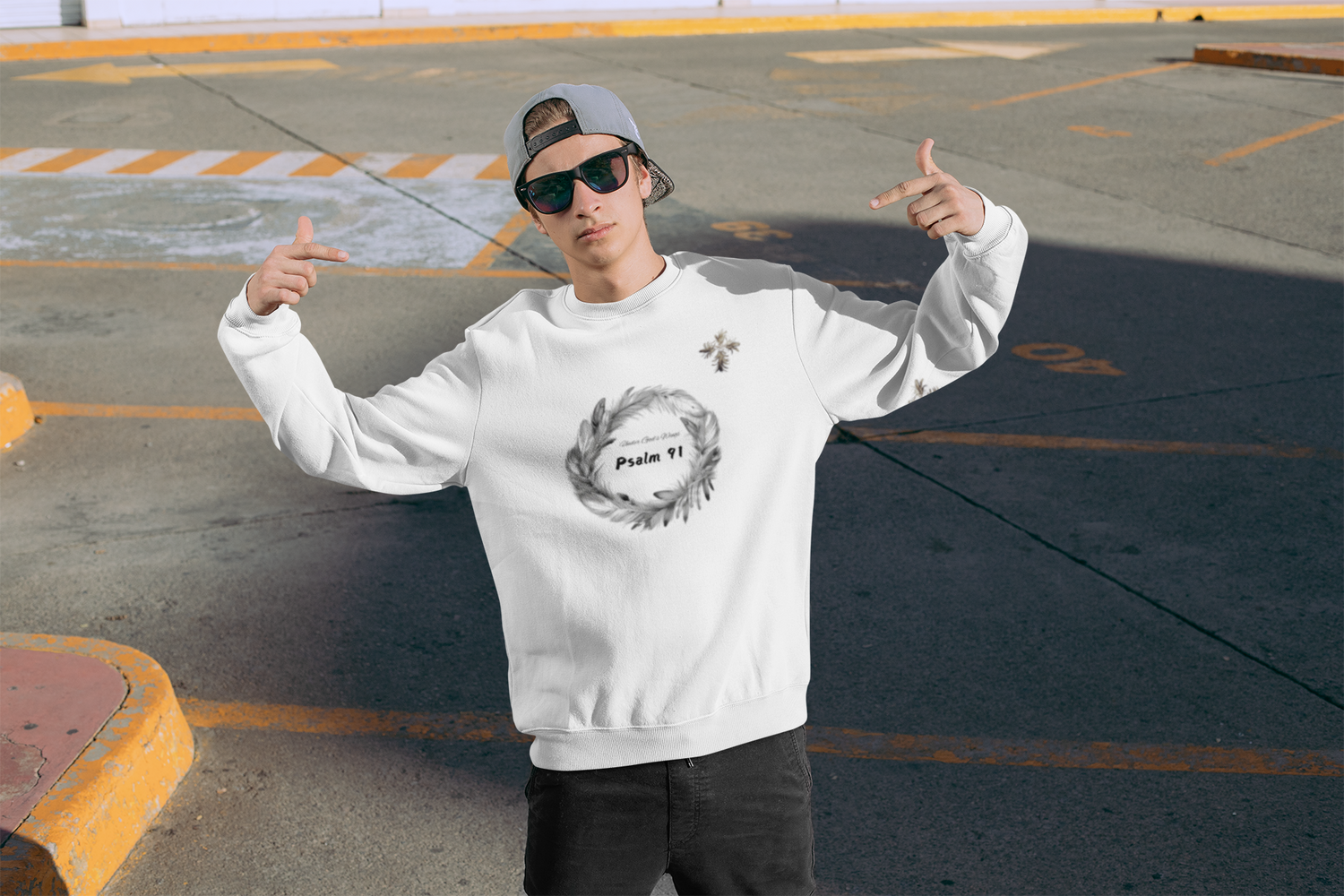 Psalm 91 Sweatshirt with Cross Men's