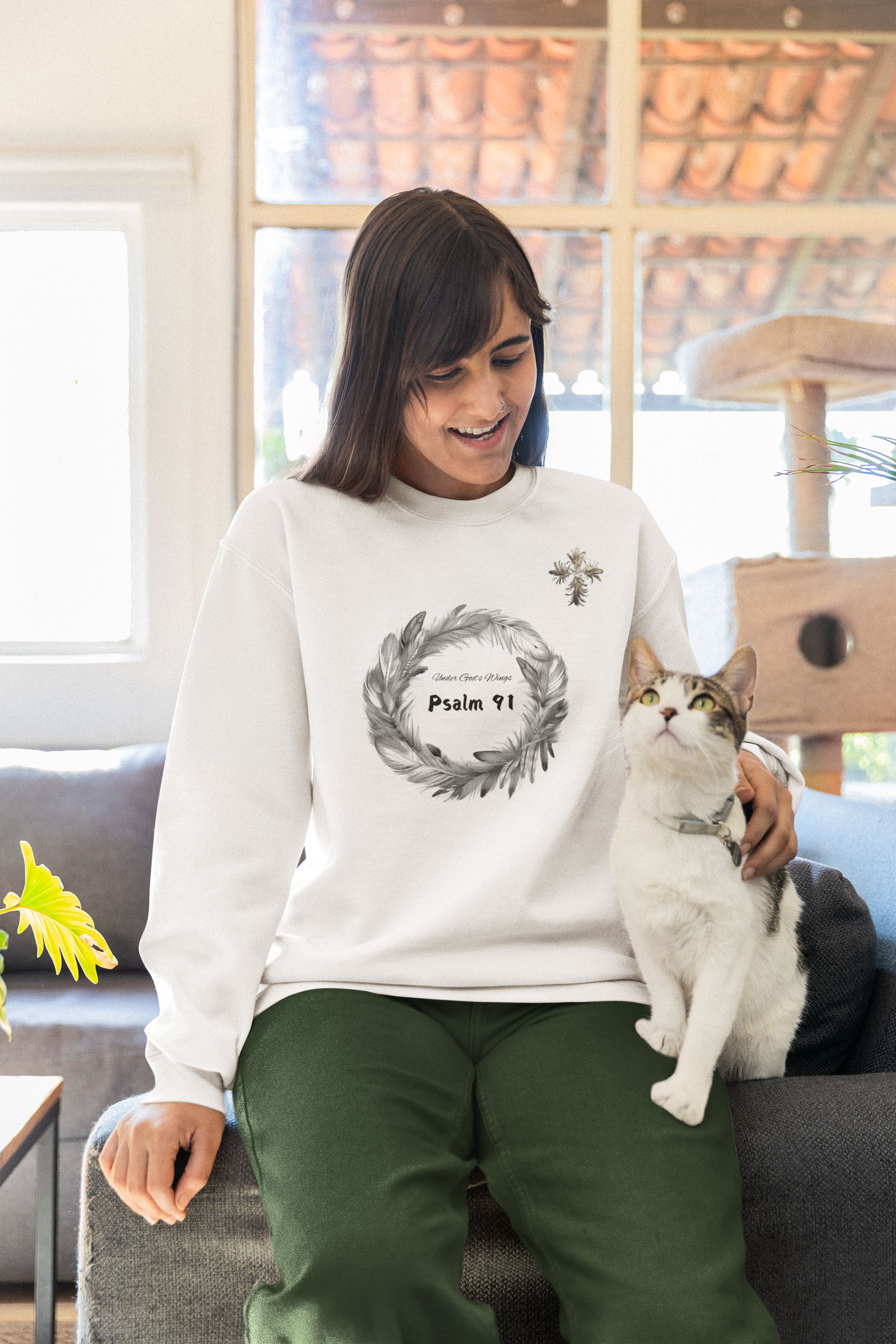 Psalm 91 Sweatshirt with feathers cross